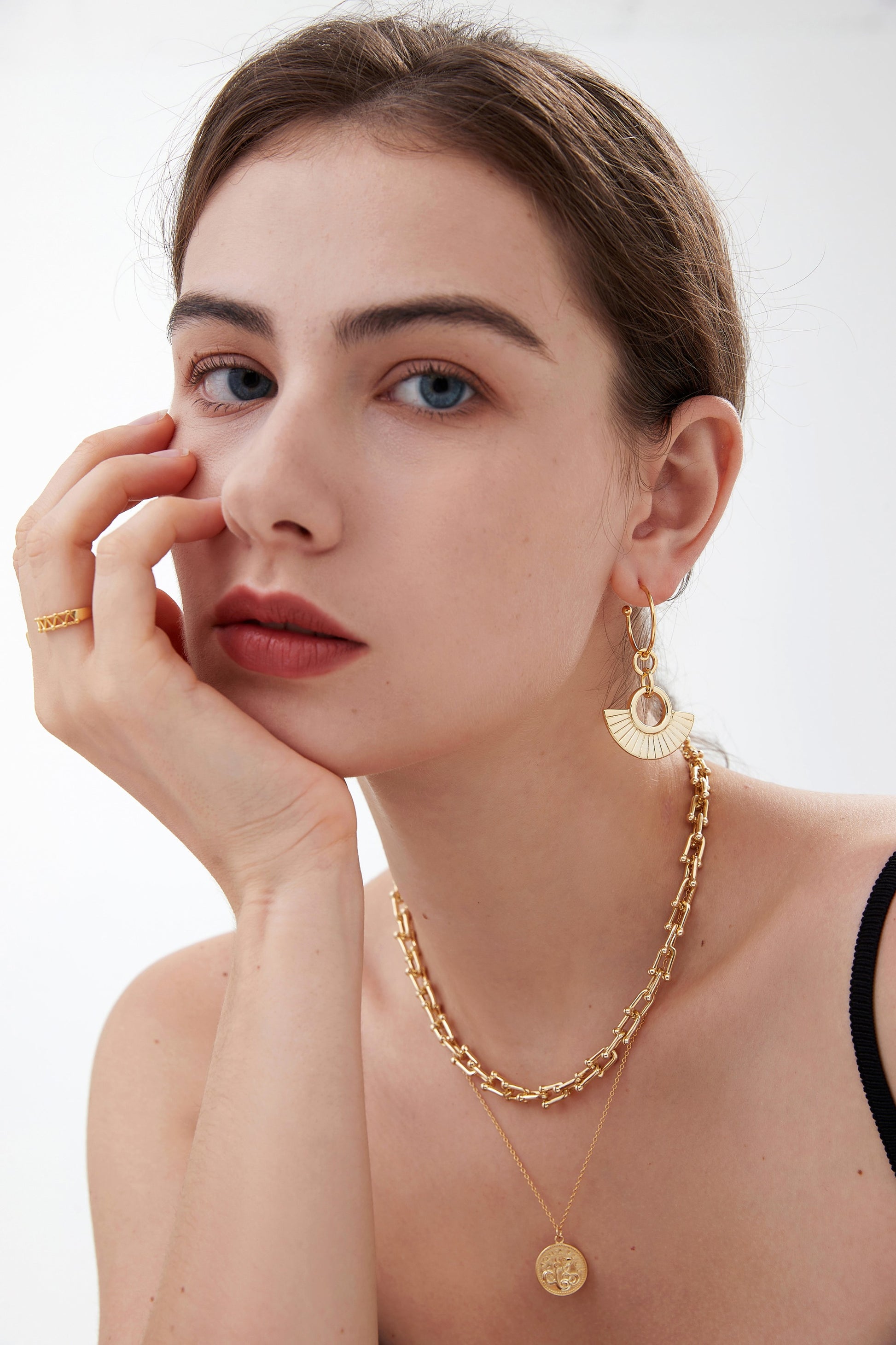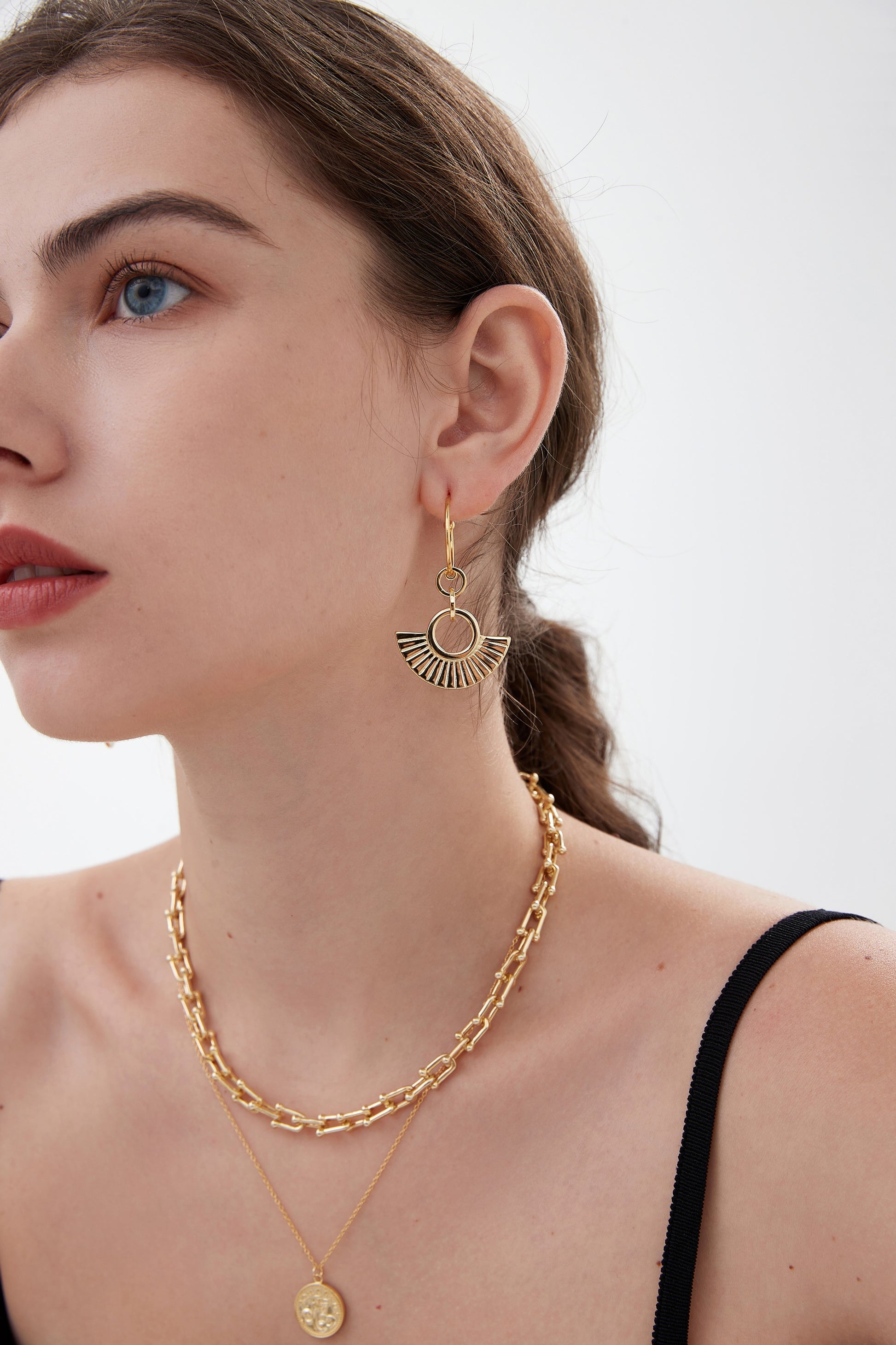 Ancient Roman Modern Striped Fan 925 Sterling Silver Earring (Single)