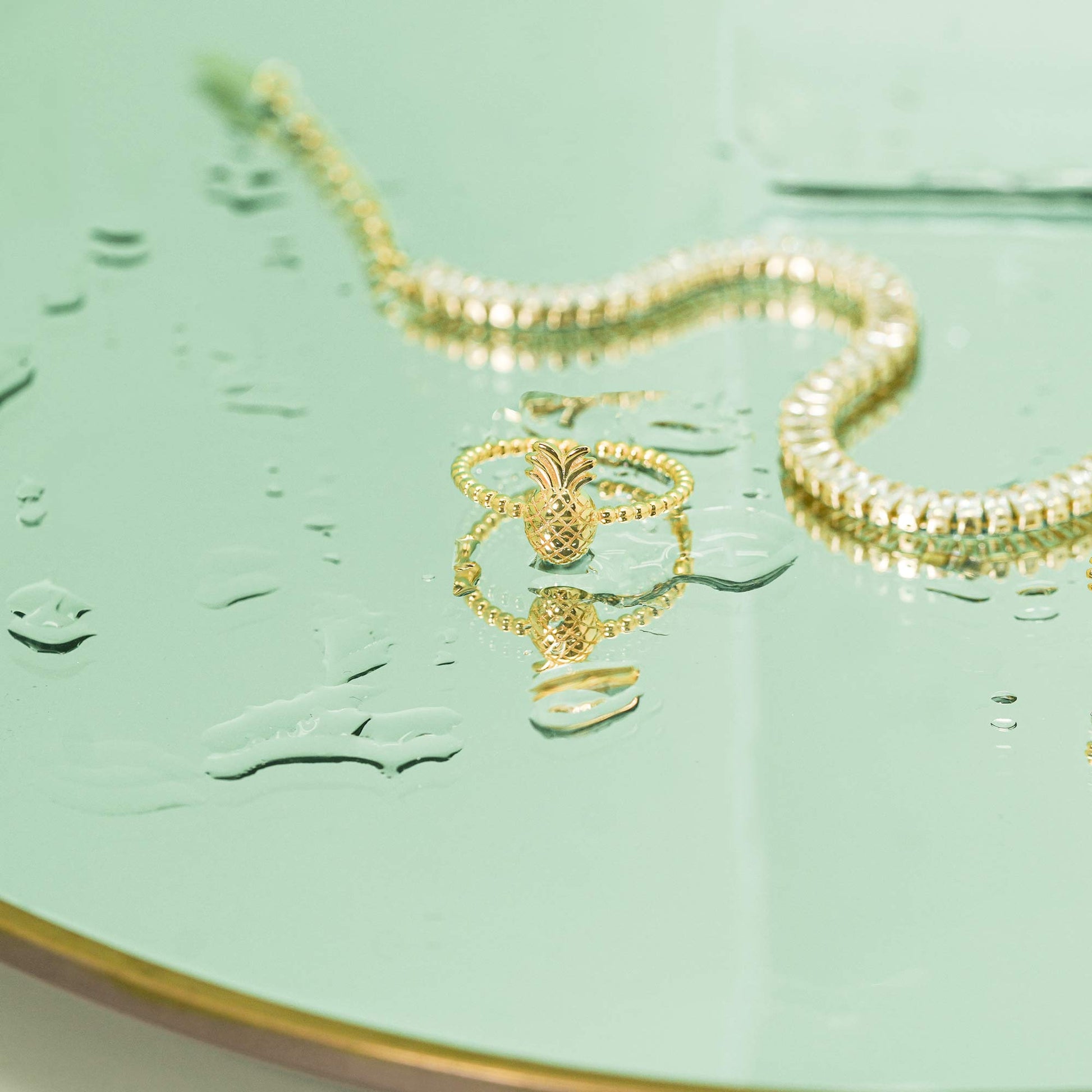 Cute Fruit Pineapple 925 Sterling Silver Adjustable Ring