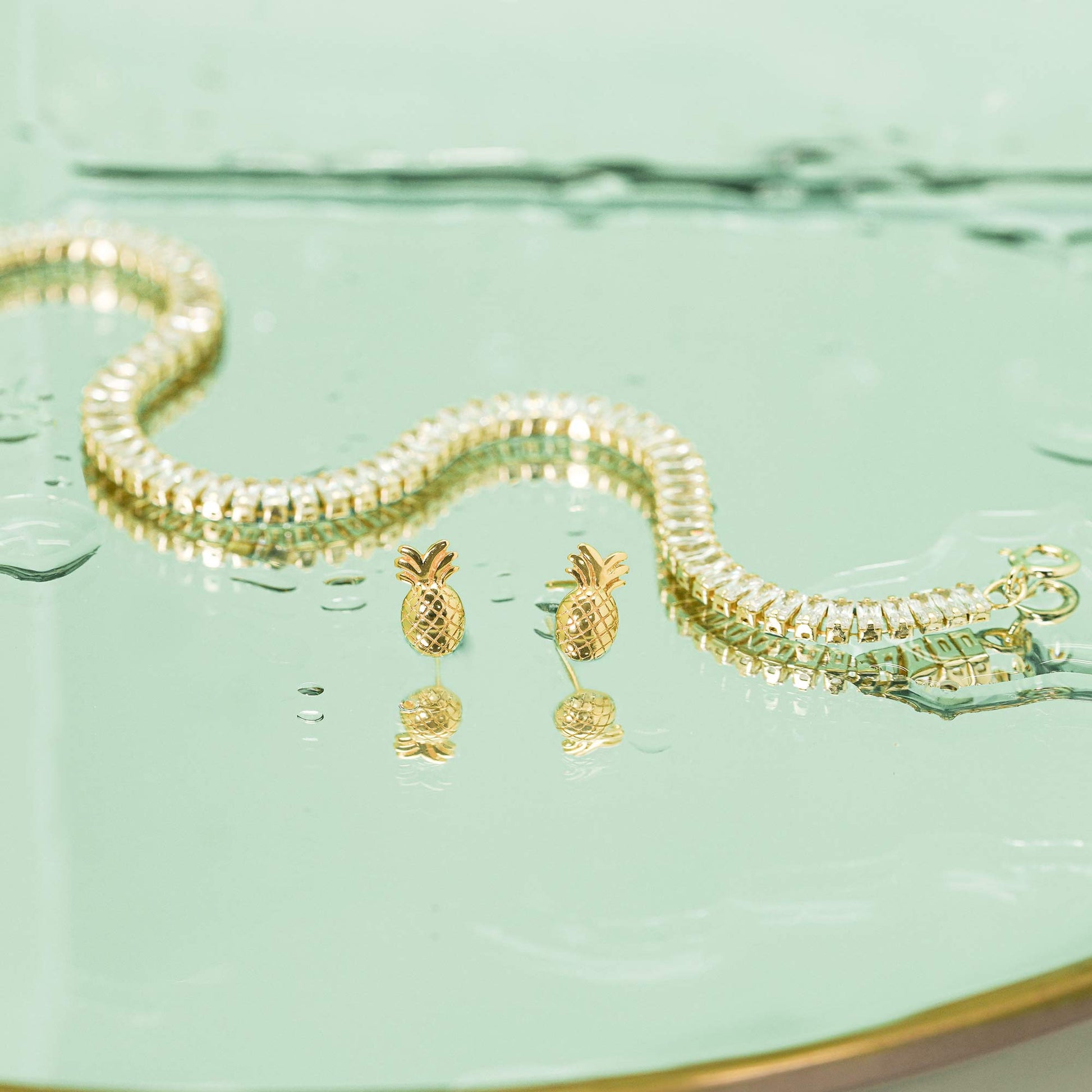 Cute Pineapple Fruit 925 Sterling Silver Stud Earrings