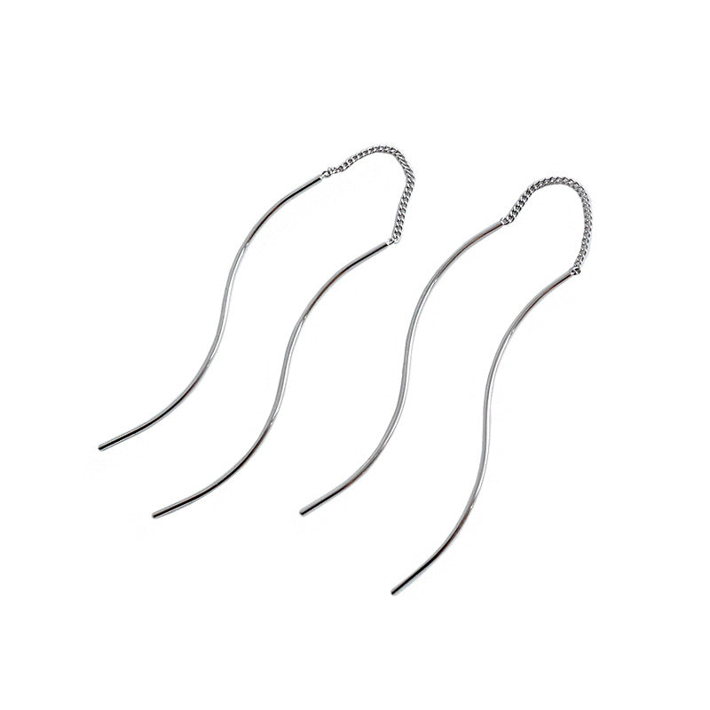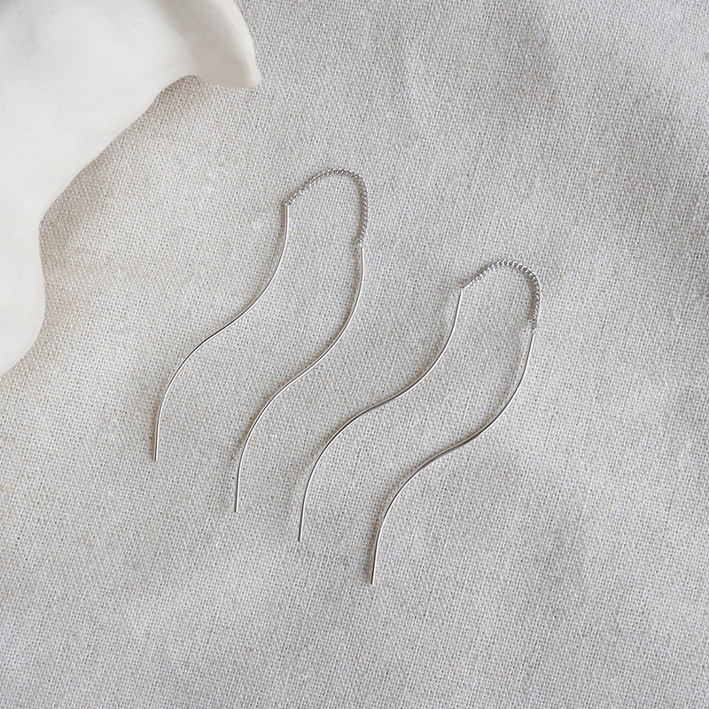 Elegant S Shape Lines Tassels 925 Sterling Silver Dangling Earrings