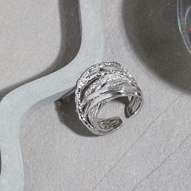 Fashion Irregular Lines Cross Wide 925 Sterling Silver Adjustable Ring