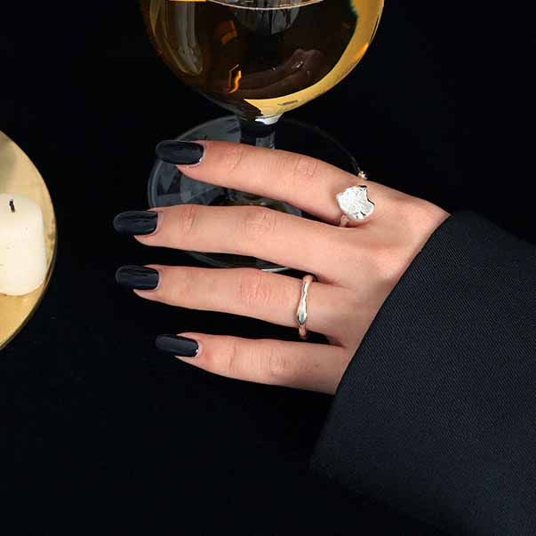 Irrgular Stone Classic 925 Sterling Silver Adjustable Ring